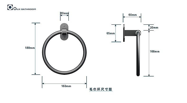 Ouji space aluminum towel ring Bathroom round towel rack Powder room ring hardware pendant wall hanging towel hanging ring