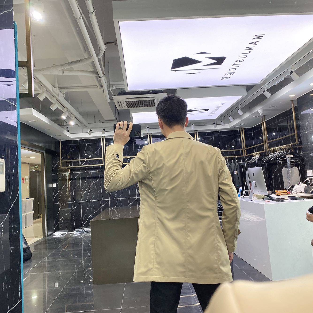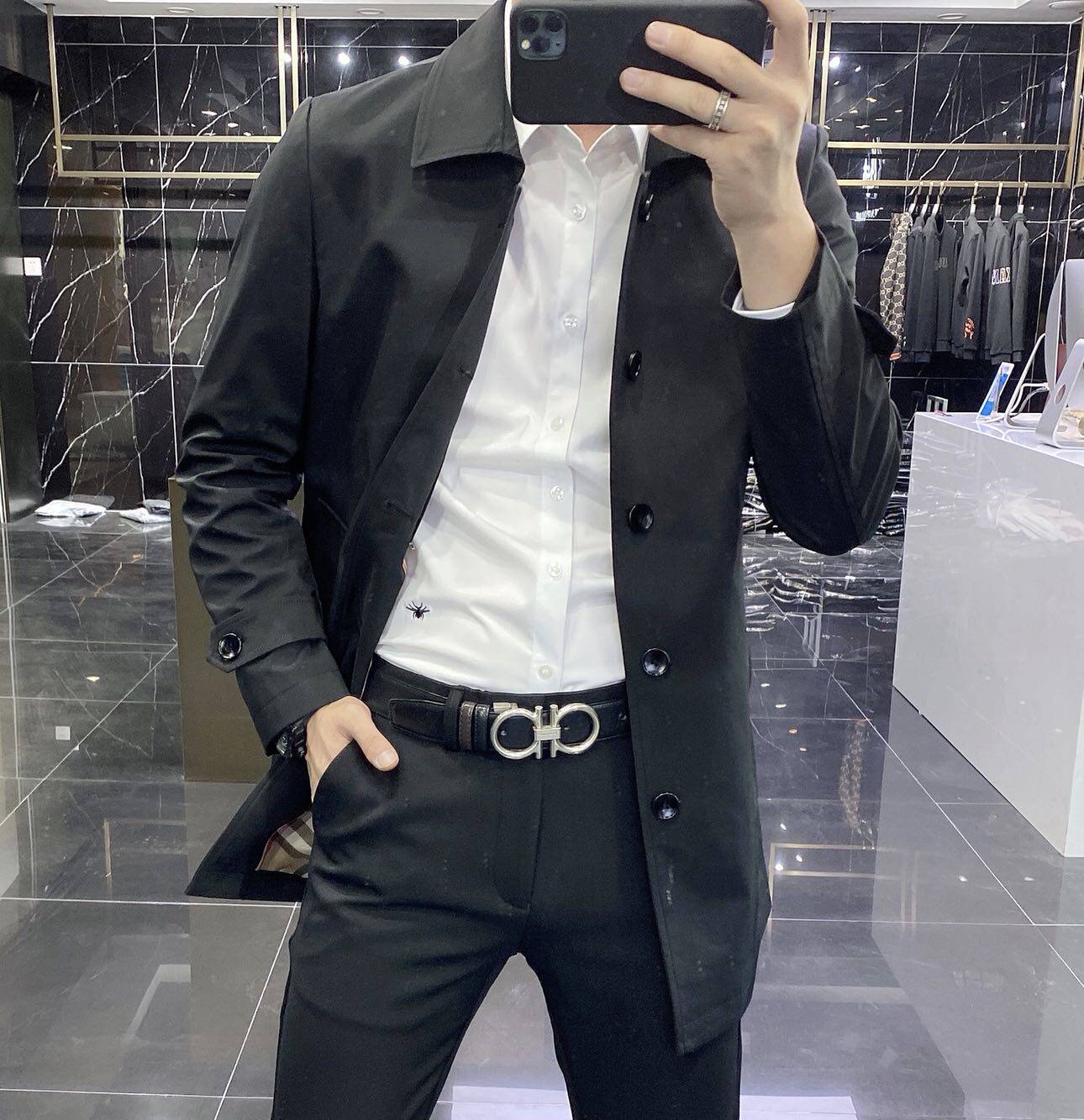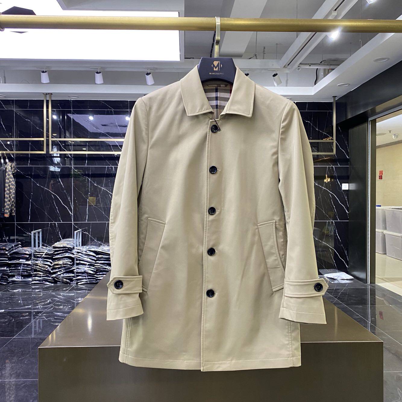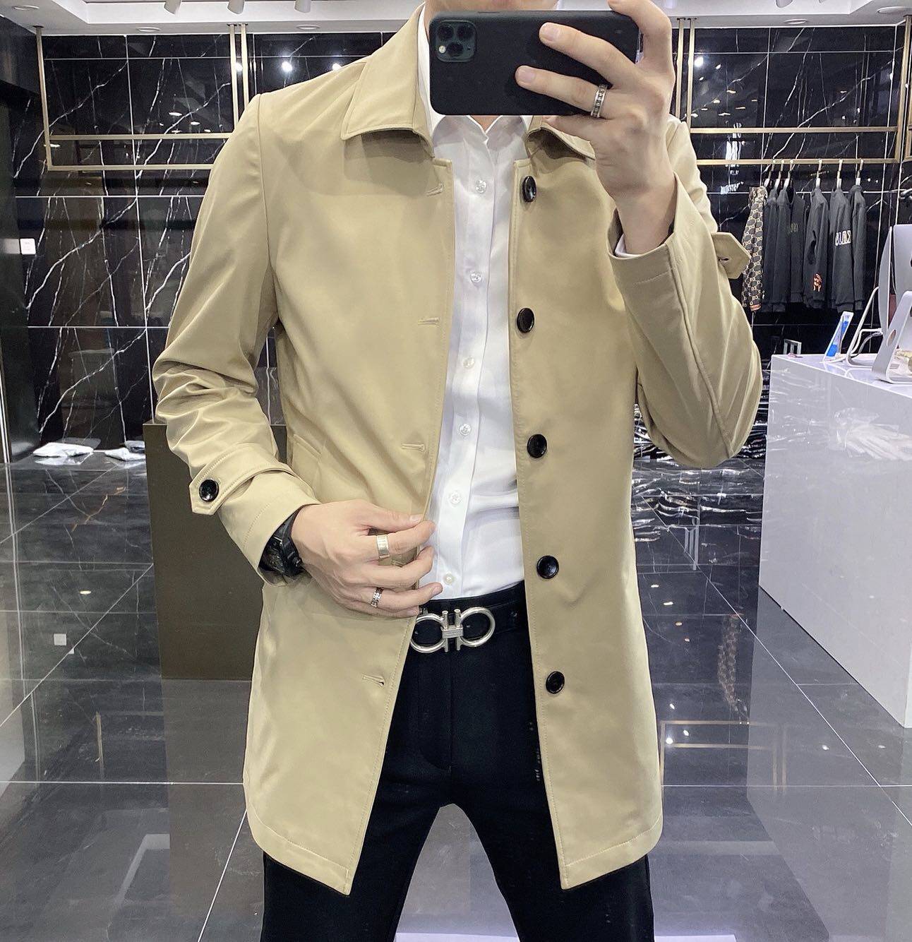 Europe station 2021 Spring and Autumn long version windbreaker men's fashion brand slim business casual jacket Jacket coat British trend