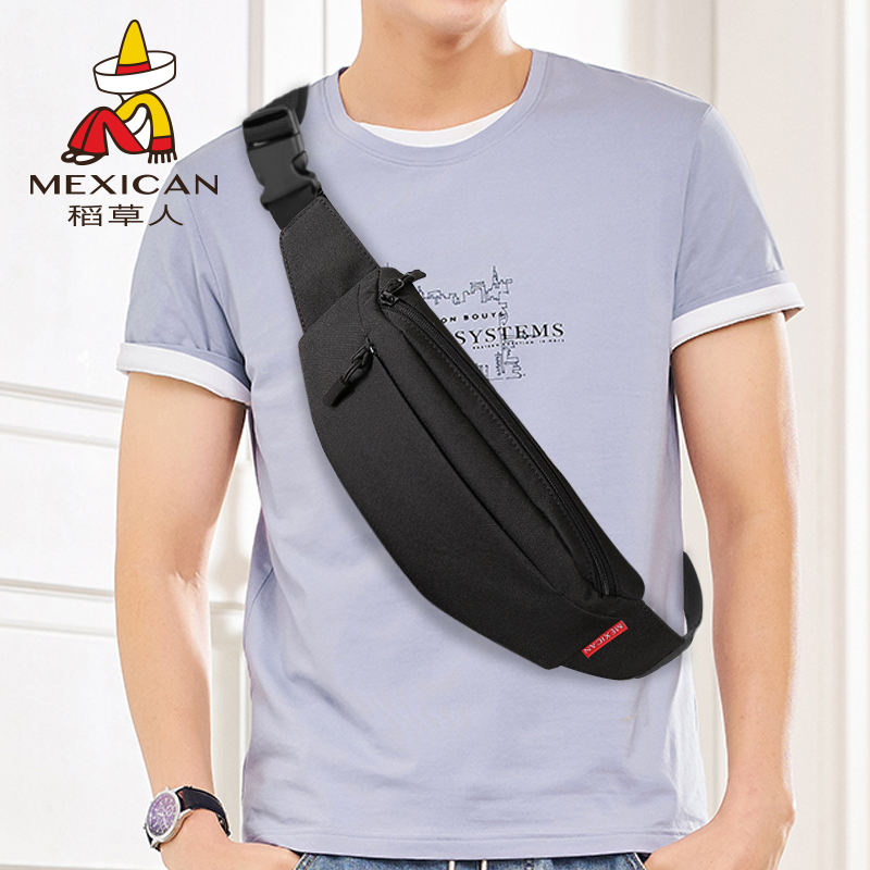 Scarecrow waist bag men's sports running mobile phone bag lightweight canvas waterproof messenger men's bag youth leisure chest bag tide