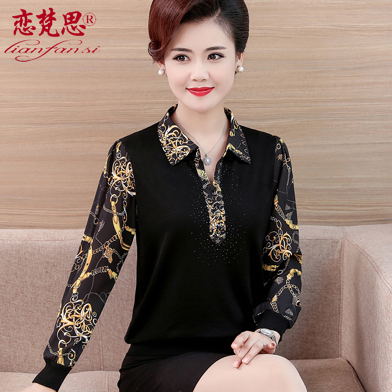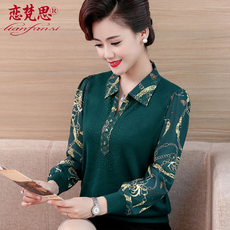 Mom autumn clothes Western style tops spring and autumn bottoming shirts long-sleeved 2022 new 50-year-old middle-aged and elderly women's knitted shirts