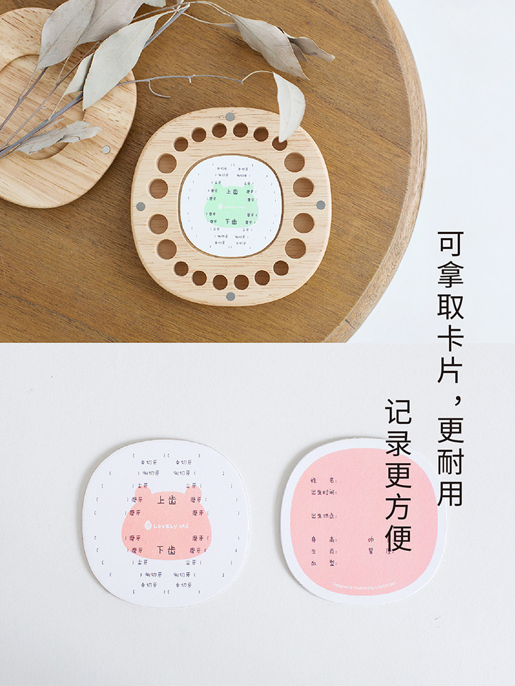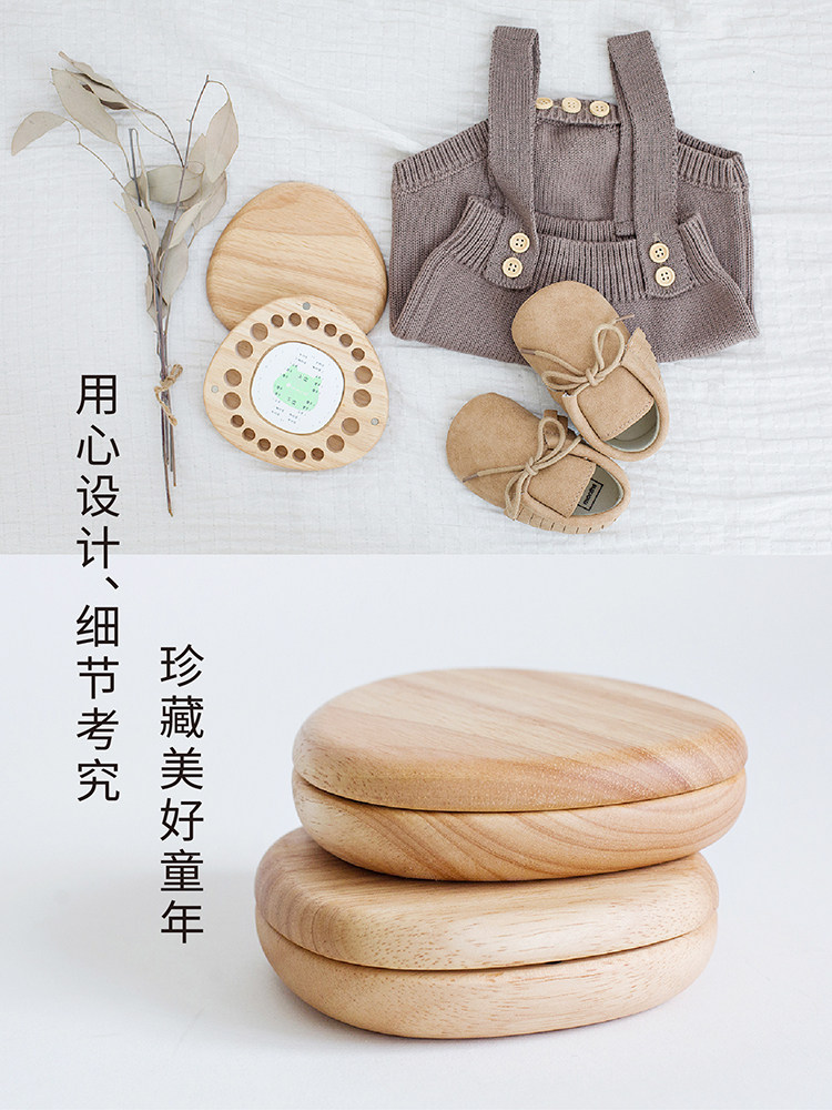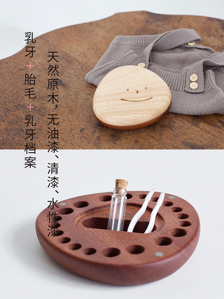Ink small solid wooden baby tooth box for boys and girls children baby memorial storage creative fetal hair bottle Smiley face tooth storage box