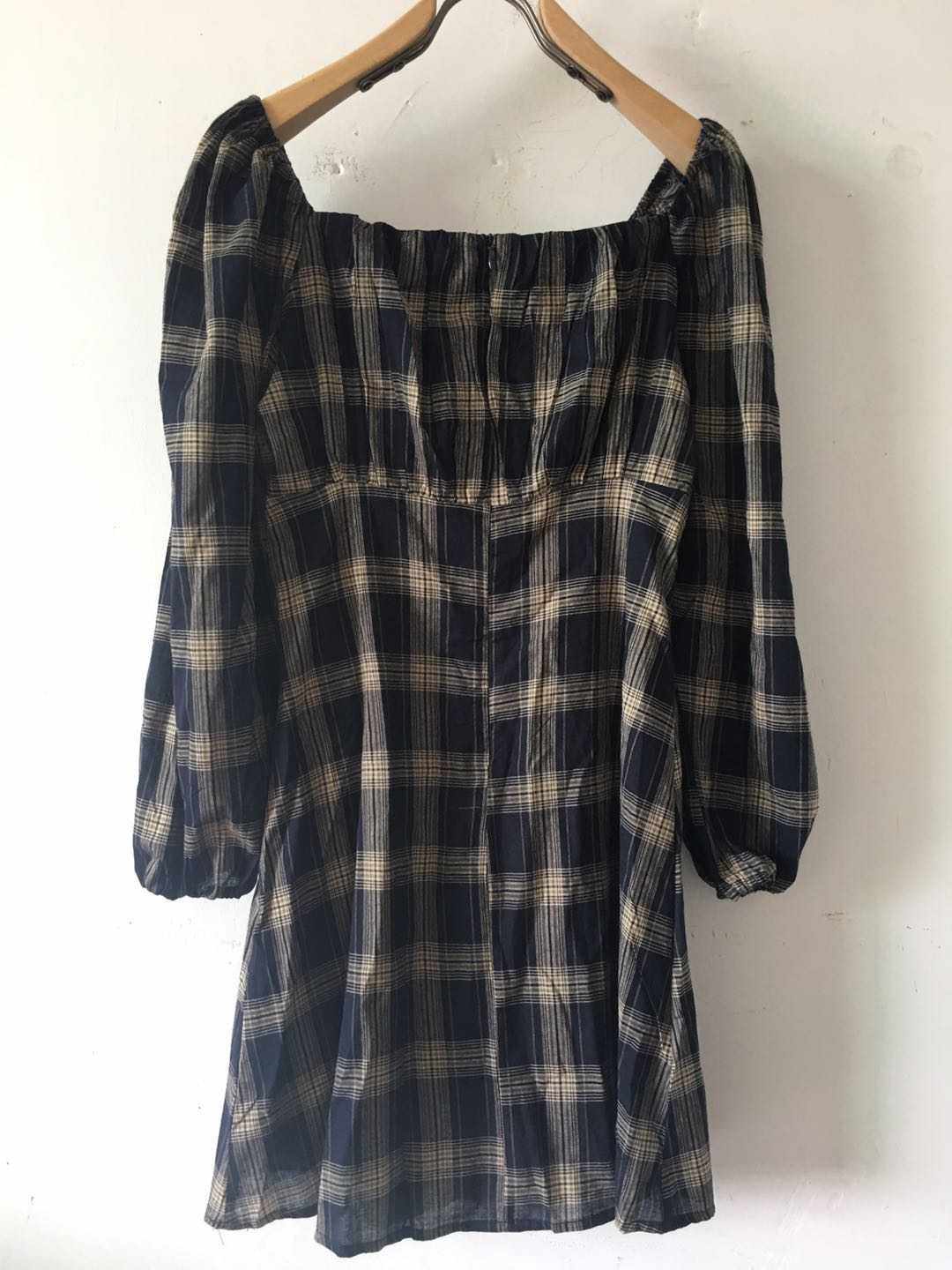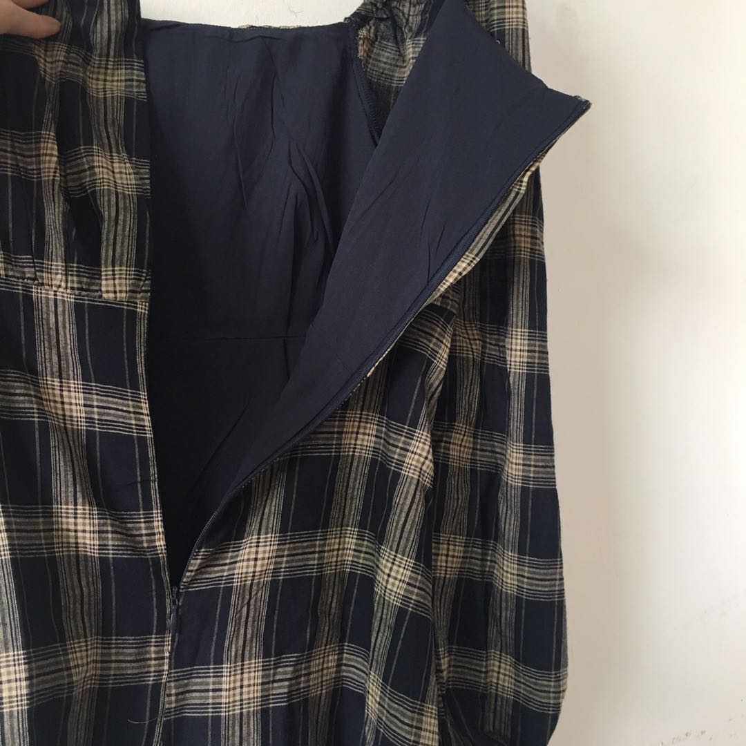 Dress women's 2020 new plaid French retro loose and thin square collar small long-sleeved skirt