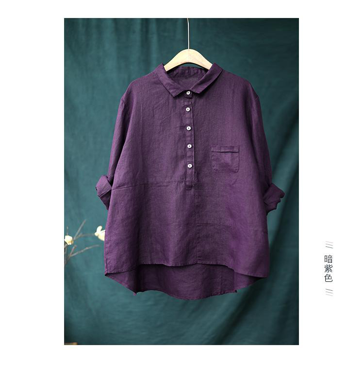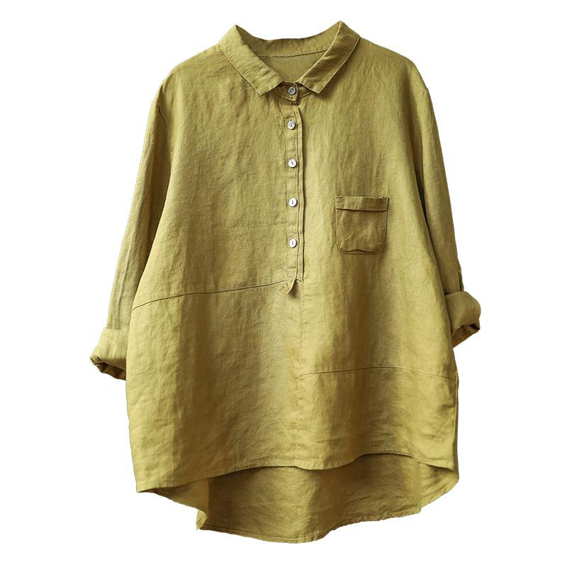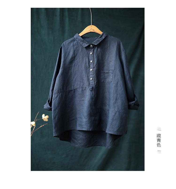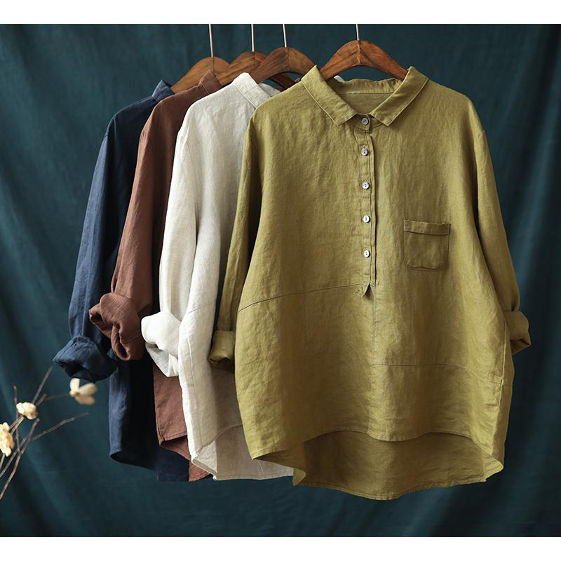 Art Pure Color Cotton Linen Long Sleeve Shirt Woman Autumn Clothing Casual Cover Head Shirt Retro Loose 100 Hitch Linen Cotton Blouse