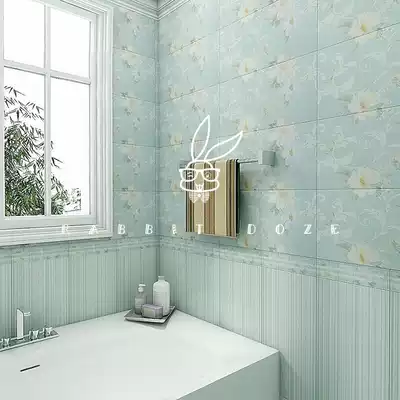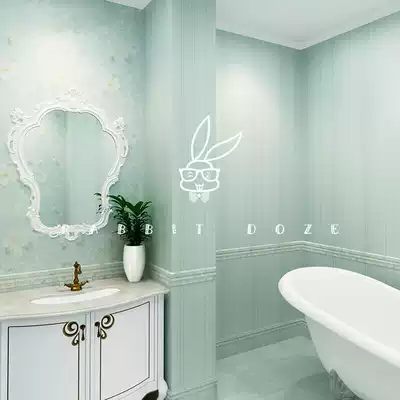 Simple modern bathroom dressing room wall tiles European stripes fresh green imitation wallpaper tiles kitchen dining room wall tiles