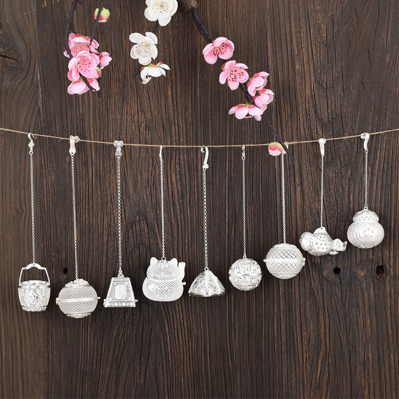Memory of ancient and modern sterling silver tea leak silver 999 handmade silver tea filter A variety of tea tea leak tea grid tea ceremony Silver tea set