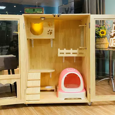 Cat villa solid wood luxury pet cage Cat house cat display cabinet Cat hotel cat house cat nest Cat hotel cat cage