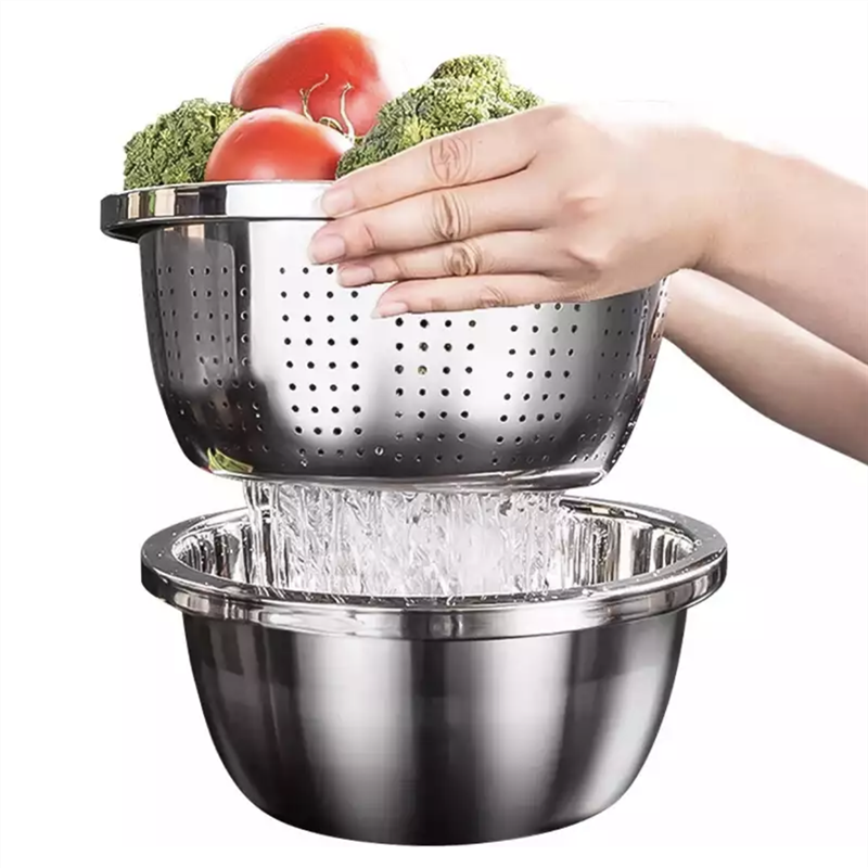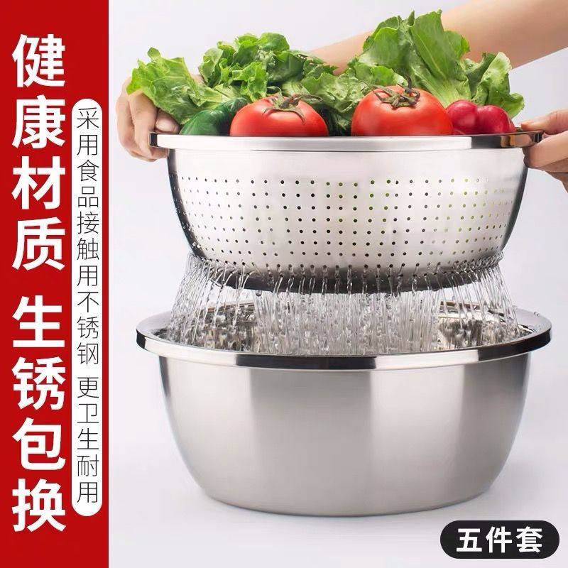 (5 piece set) stainless steel sleeve pot household dishwashing basin and wash basin kitchen rice bowl beaten egg bowl for soup bowl