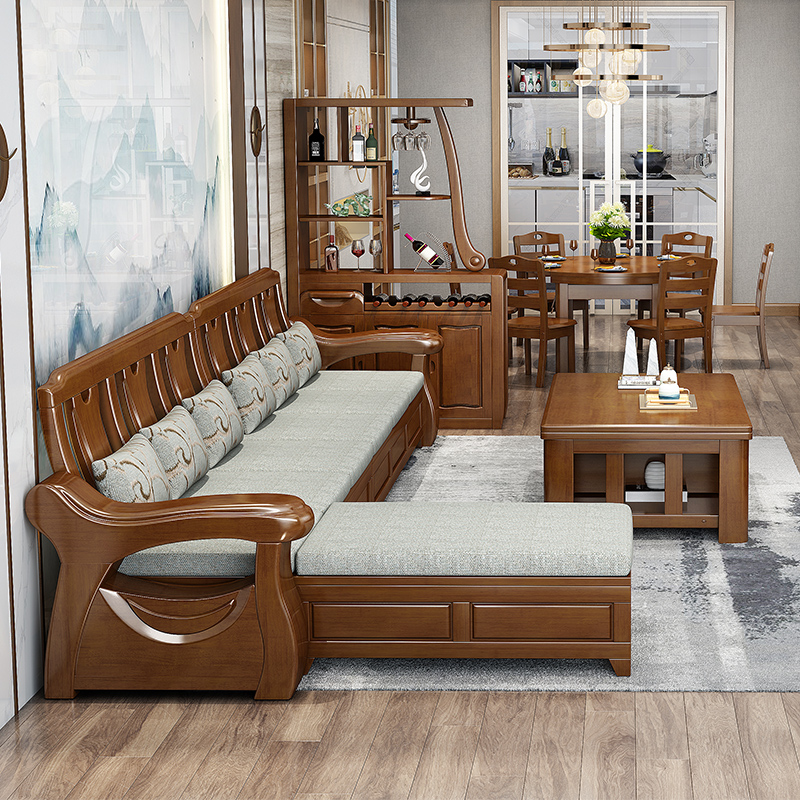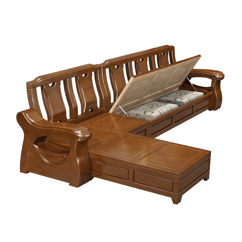 Solid wood sofa winter and summer dual-use new Chinese furniture living room corner concubine storage box three-seat wooden sofa