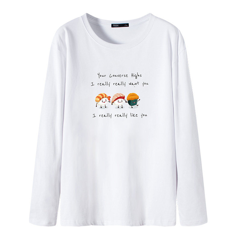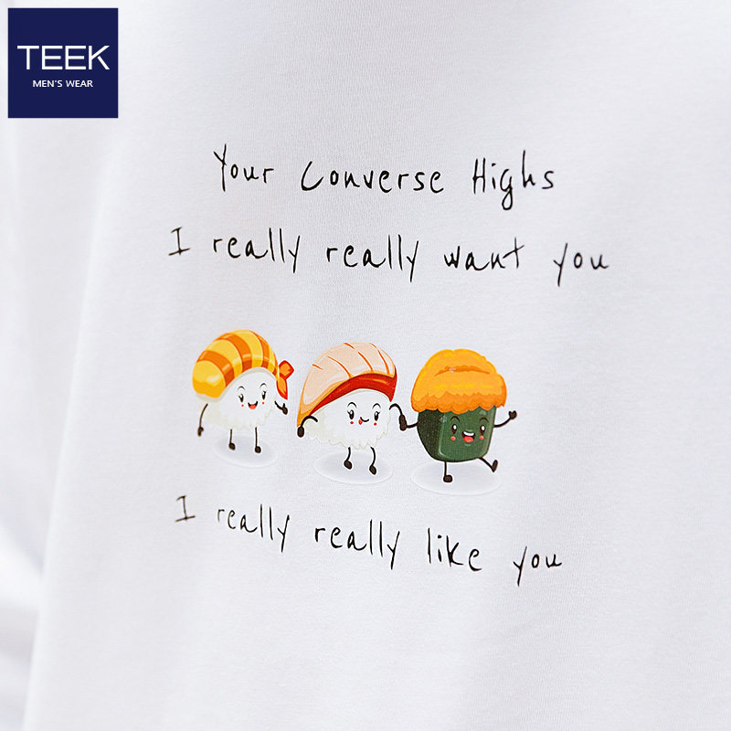 TEEK cotton t-shirt men's long sleeves trend spring fashion bottoms teen cartoon fun print autumn clothes
