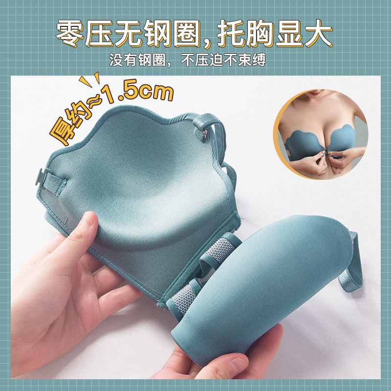 Young girl bra no shoulder strap non-slip underwear female small breasts gather without steel ring front button merch back bra cover thin summer