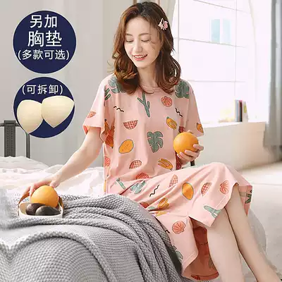 Women's summer with bra night dress chest pad Underwear cup one-piece short-sleeved T-shirt Bra loose pajamas medium and long night dress