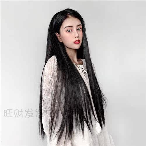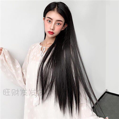 Wig Women U Type real hair Fat sheet One piece long straight hair net red No marks European and American black long direct hair sheet
