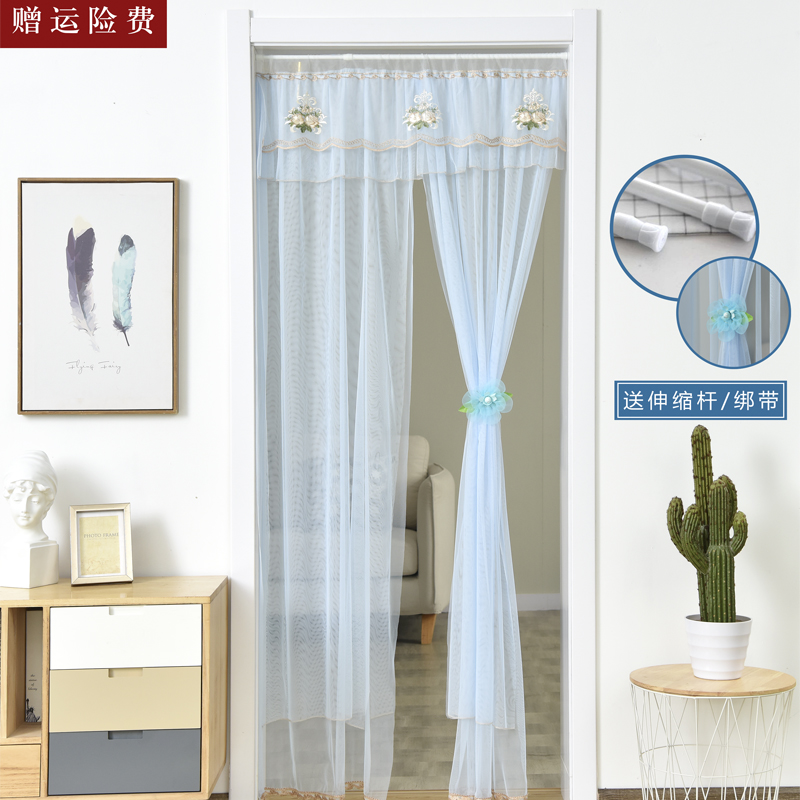Door Curtain Summer Mosquito-Proof Home Bedroom Decorative Curtain Beauty Salon Lace Net Fairy valve blinds free of punch