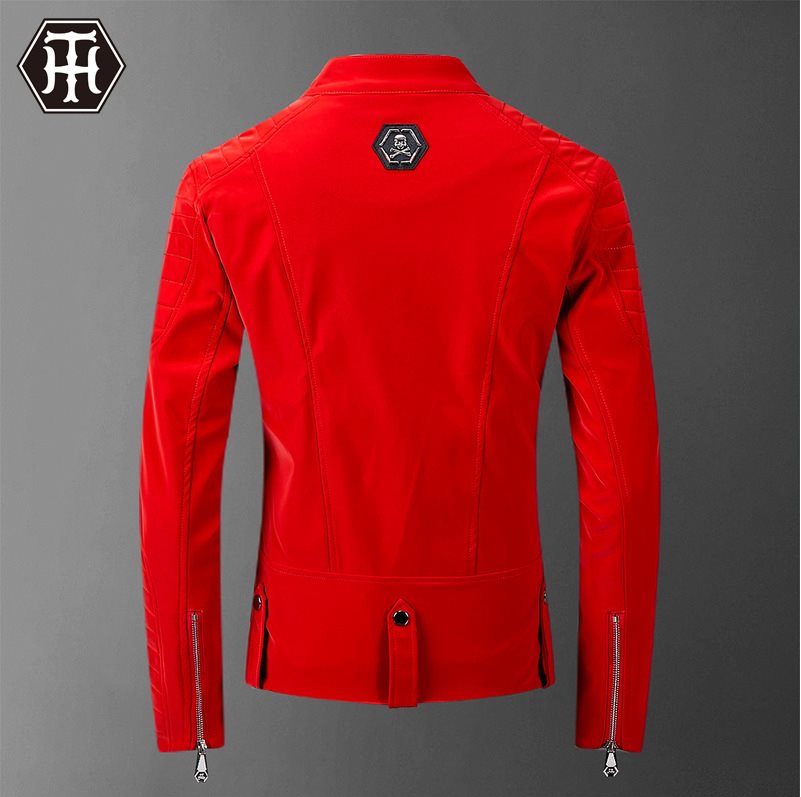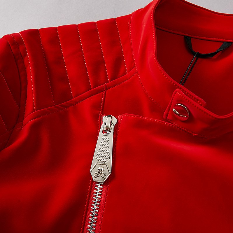 European and American luxury Korean version men's motorcycle jacket leather jacket leather fleece solid color youth stand-up collar simulation leather jacket men's short