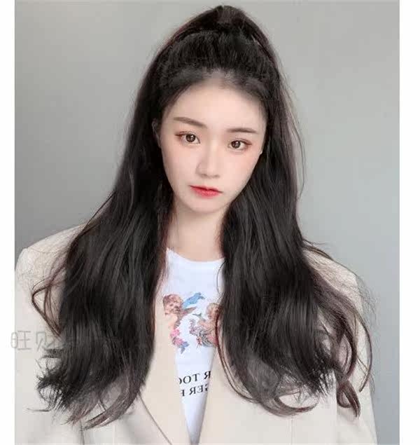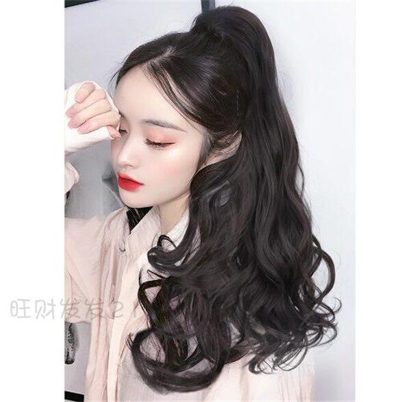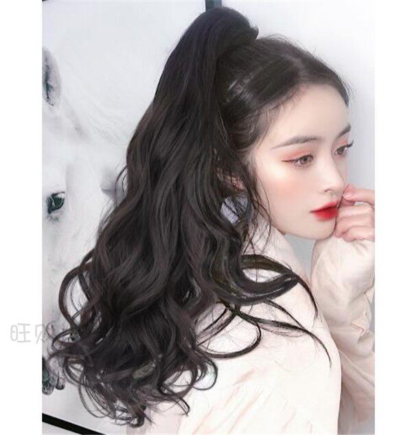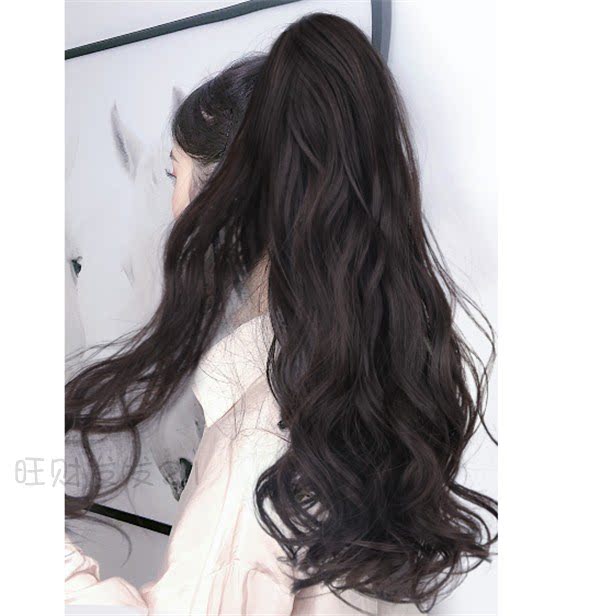 Real hair wig woman long curly hair large wavy tie-belt braid invisible and fluffy puffy natural horsetail