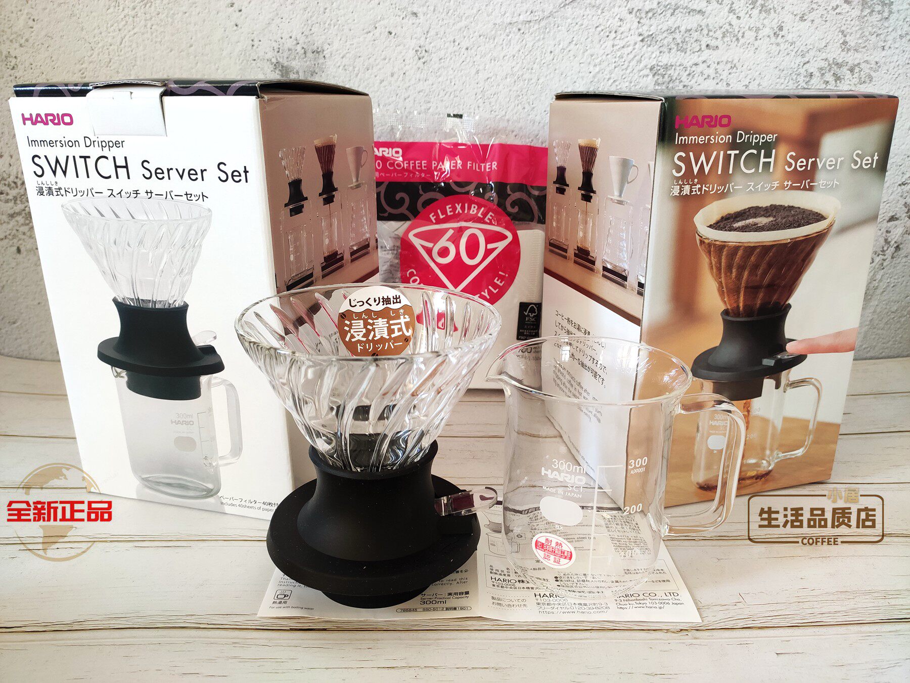 Japan HARIO smart cup set V60 glass filter cup hand flush with switch filter cup with filter paper SSD-200-B