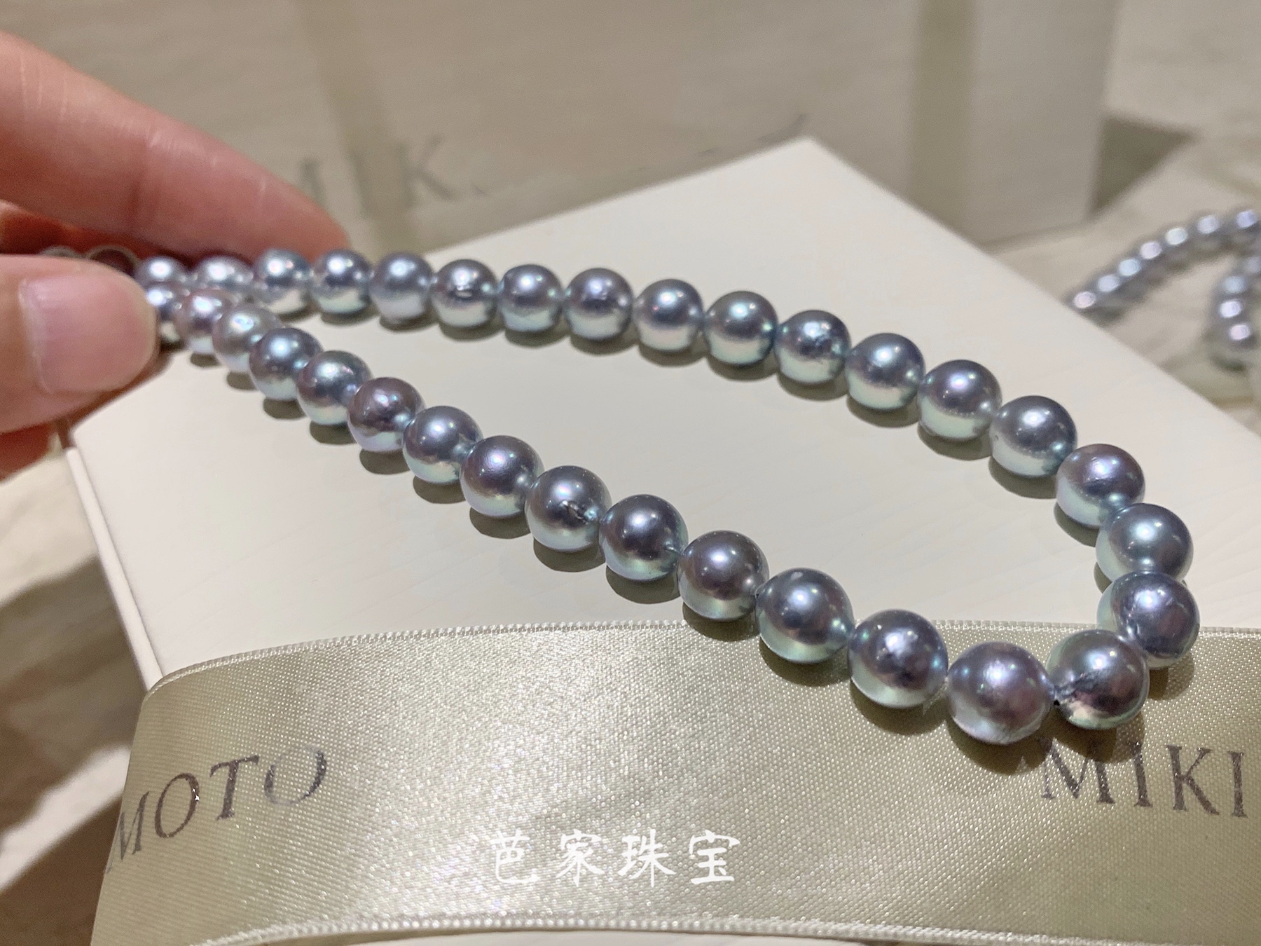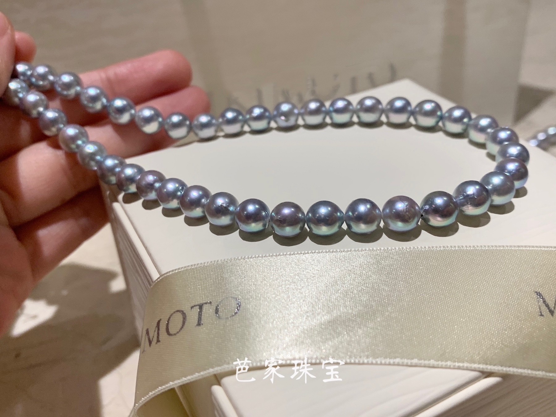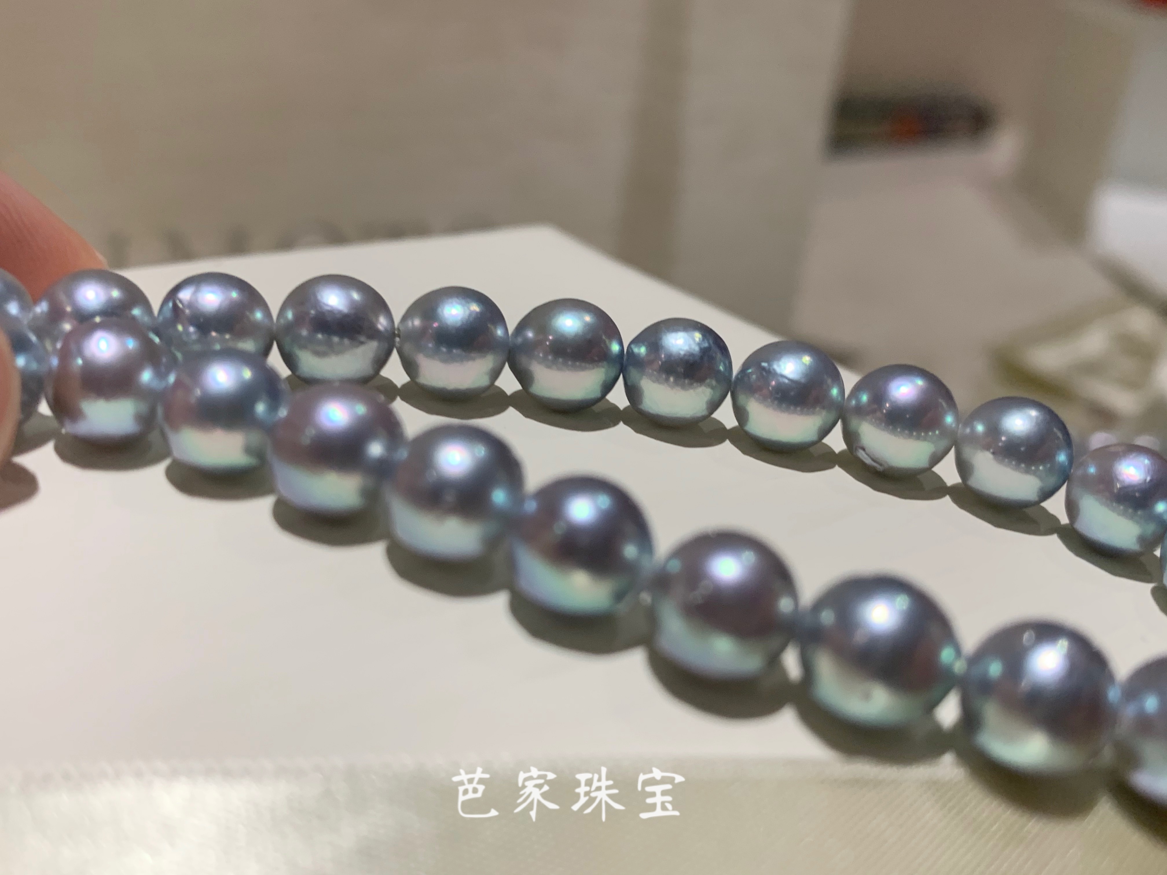 Special ~ Barmy Blue Rose natural silver blue grey Japan akoya real Dolomite sea pearl string bead necklace