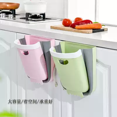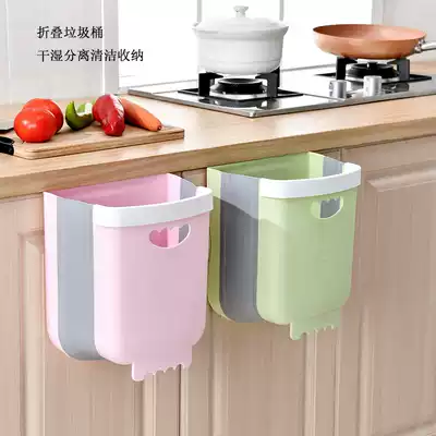 Kitchen trash can-hanging integral cabinet door household foldable small size special dry and wet separation without bending over creativity
