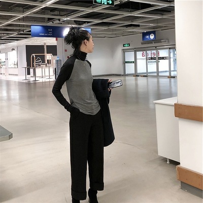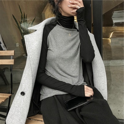 Gush high collars undershirt women's autumn new Korean version 100 hitch student casual workout long sleeve T-shirt female blouses