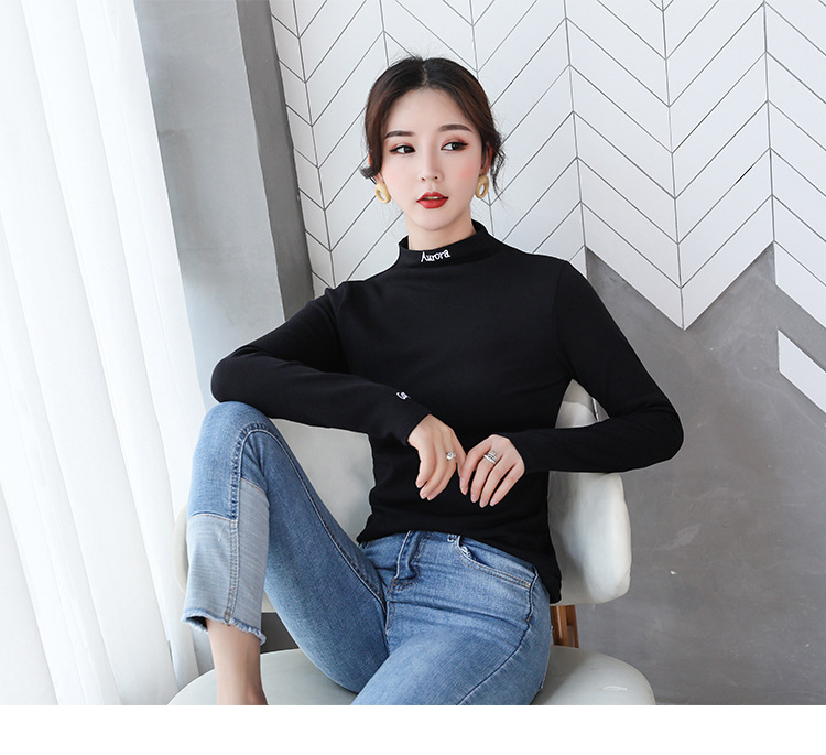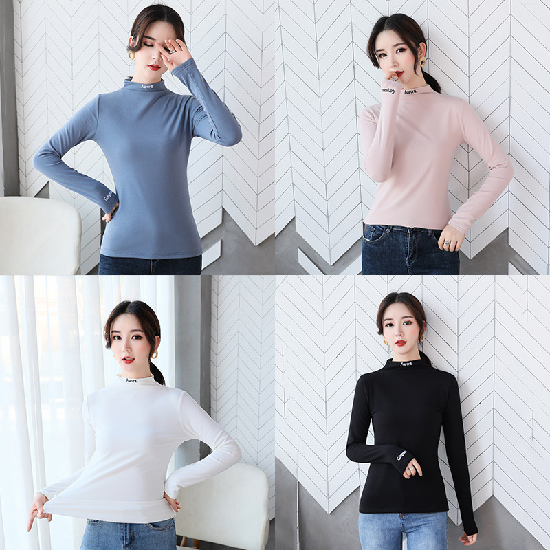 2022 autumn winter new half high collar bottom shirt female inner lap casual 100 lap long sleeve T-shirt female blouse surge