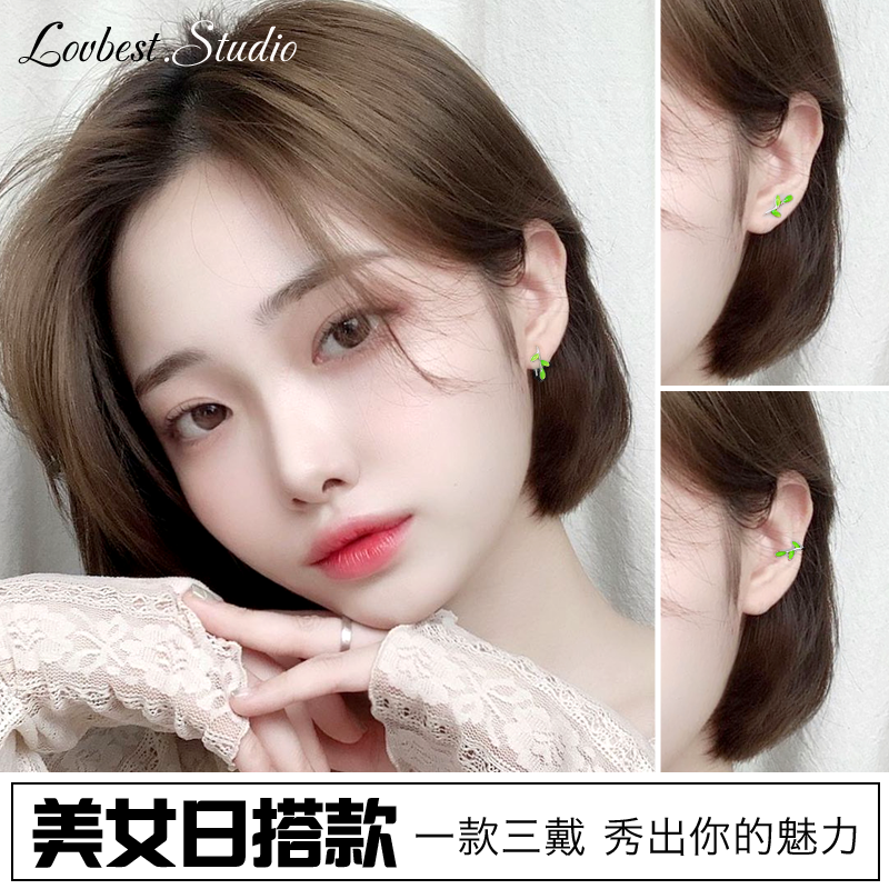 (Green leaf pair) The whole 925 silver (common pair) The whole 925 silver