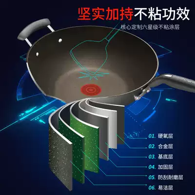 Supor flaming red dot 4th generation titanium alloy just fume-free wok non-stick household wok induction cooker gas universal