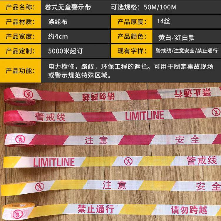 Box No Box Red White 100 m Attention Safety No Box Red White 100 m Alarm Ring No Box Red White 100 m Forbidden Pass Do Not Cross Box Red White 50 m Police Cordon No Box Red White 50 m Forbidden Pass