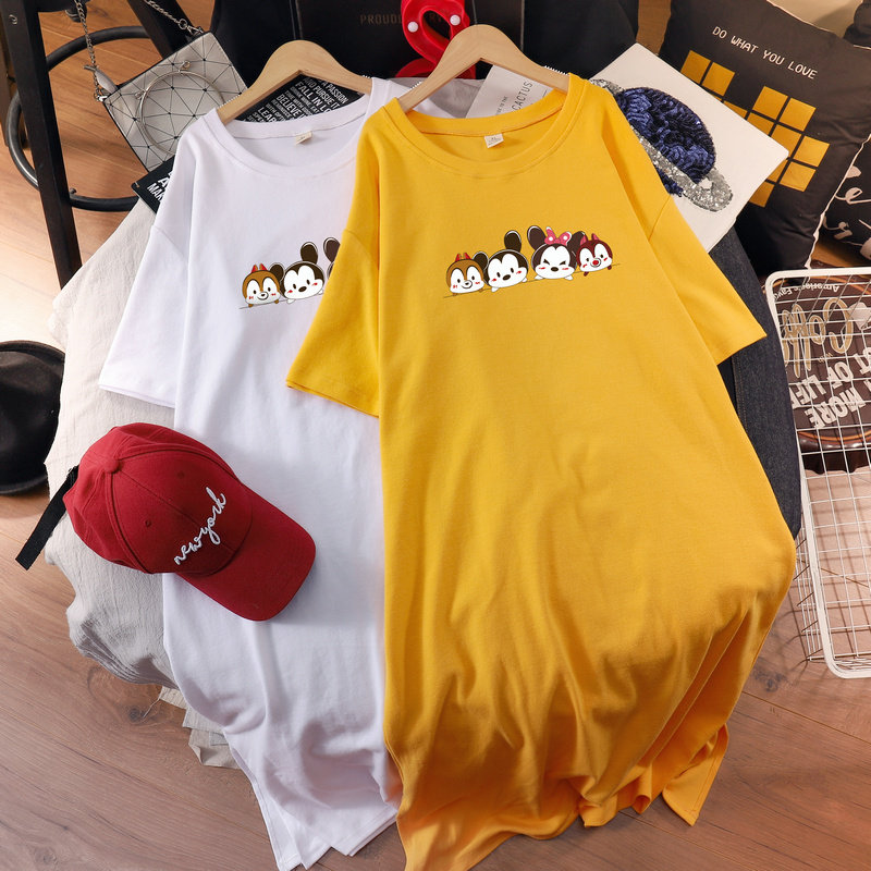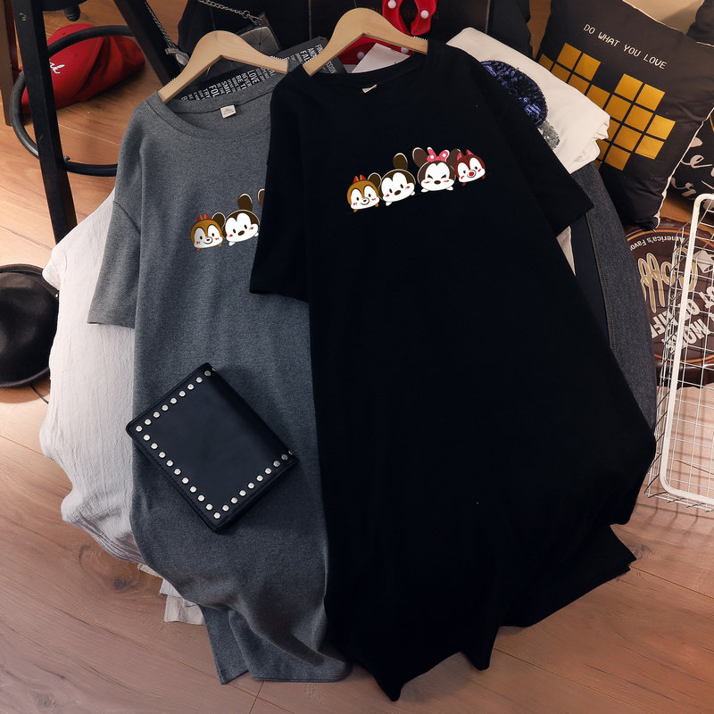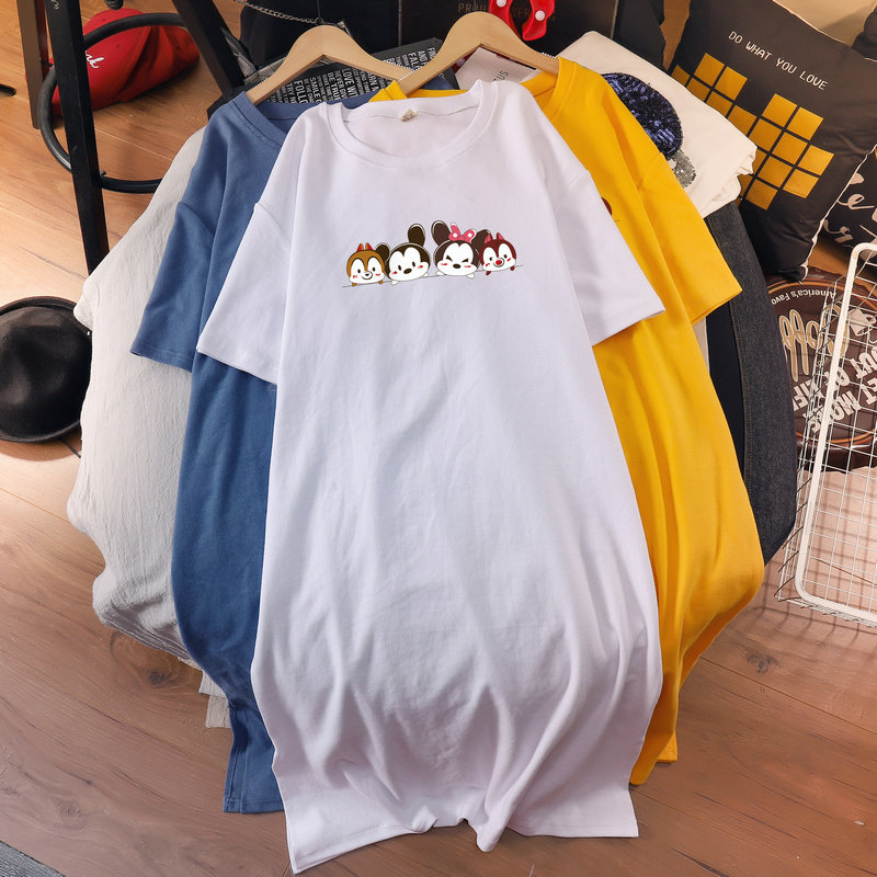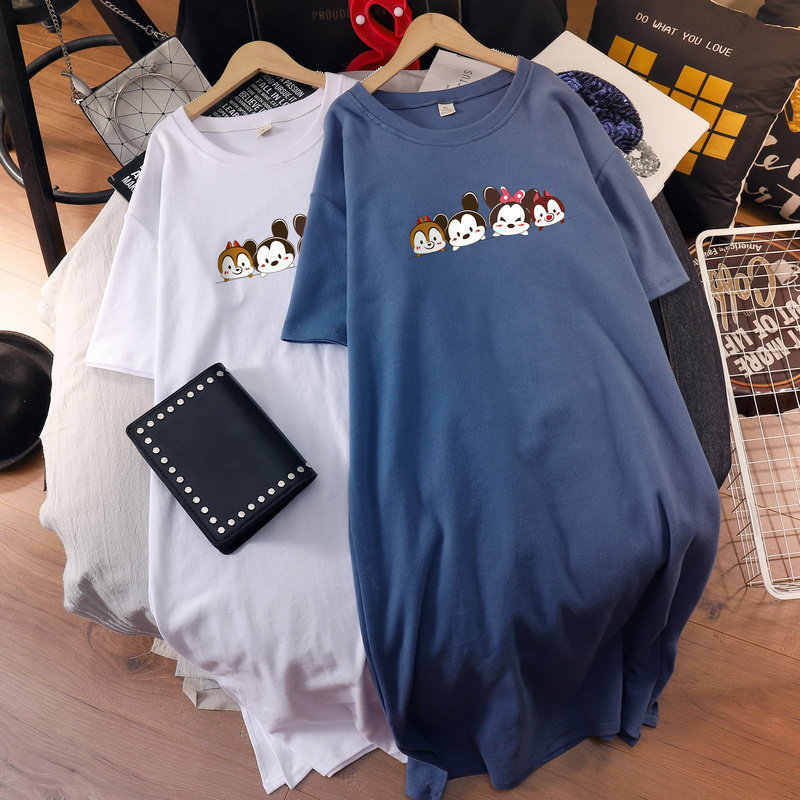 Maternity wear fashion dress 2022 summer large size fat mm loose cotton short-sleeved t-shirt over the knee long skirt for pregnant women