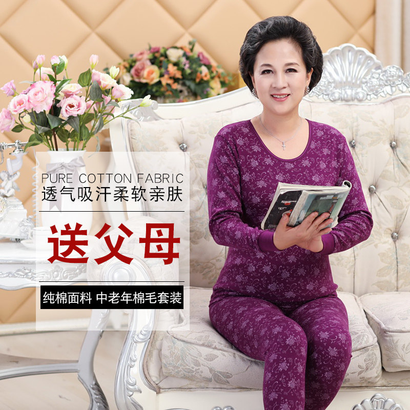 Flying in the snow in the elderly women's autumn clothes sanitary pants pure cotton large size heating clothes for the elderly suit Mom cotton sweater winter