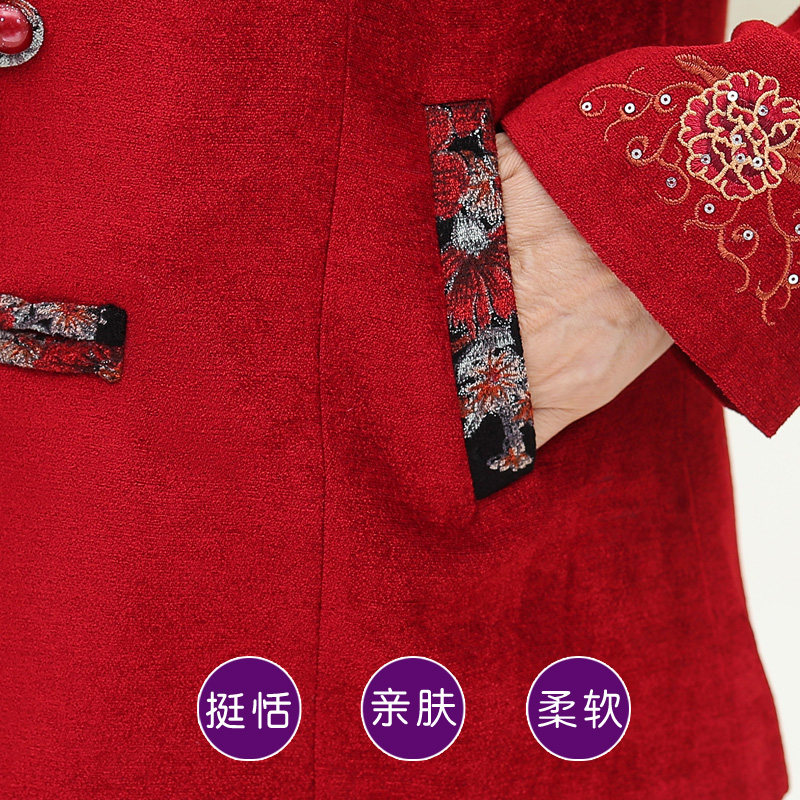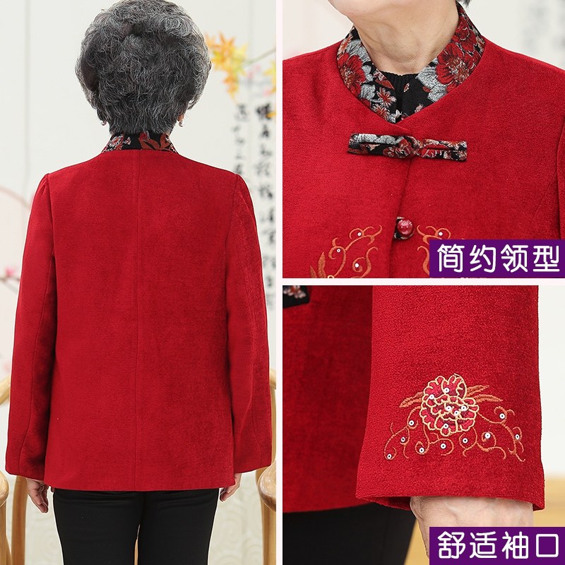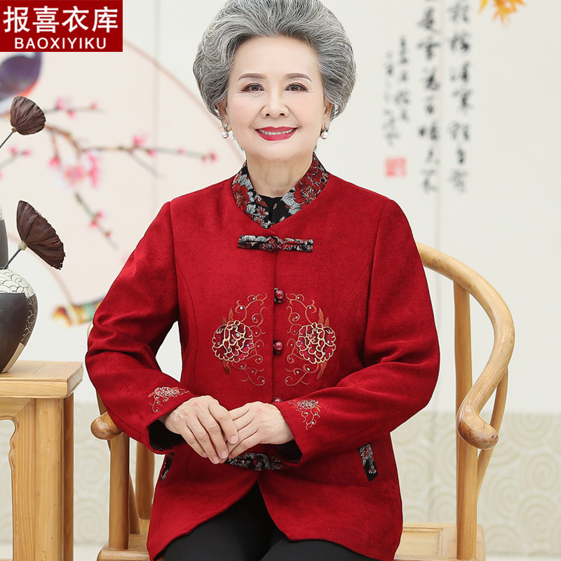 Middle-aged and elderly Spring dress jacket female mother Spring and autumn long sleeves embroidered Tang dress Grandma National Wind suit Mrs. clothes