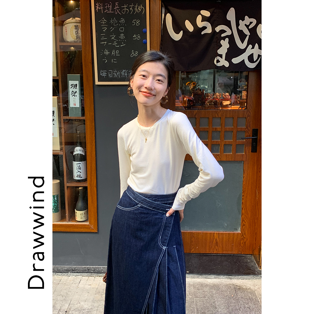 Drawwind long sleeves t-shirt with pure coloured collar sleeve sleeve dress slim and leisure spring and summer tops