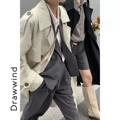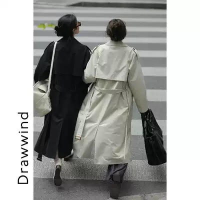 Painting style drawwind windbreaker 2021 new medium and long version of small man British style temperament pop Korean coat women
