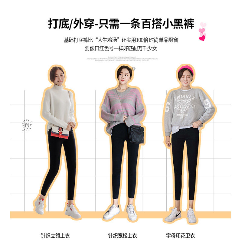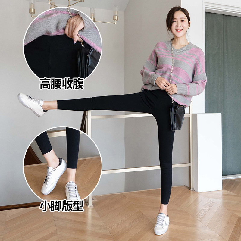 Korean version boomer black inner lap pants woman outside wearing spring and autumn thin section Broken Hole 90% small foot elastic tight pencil pants