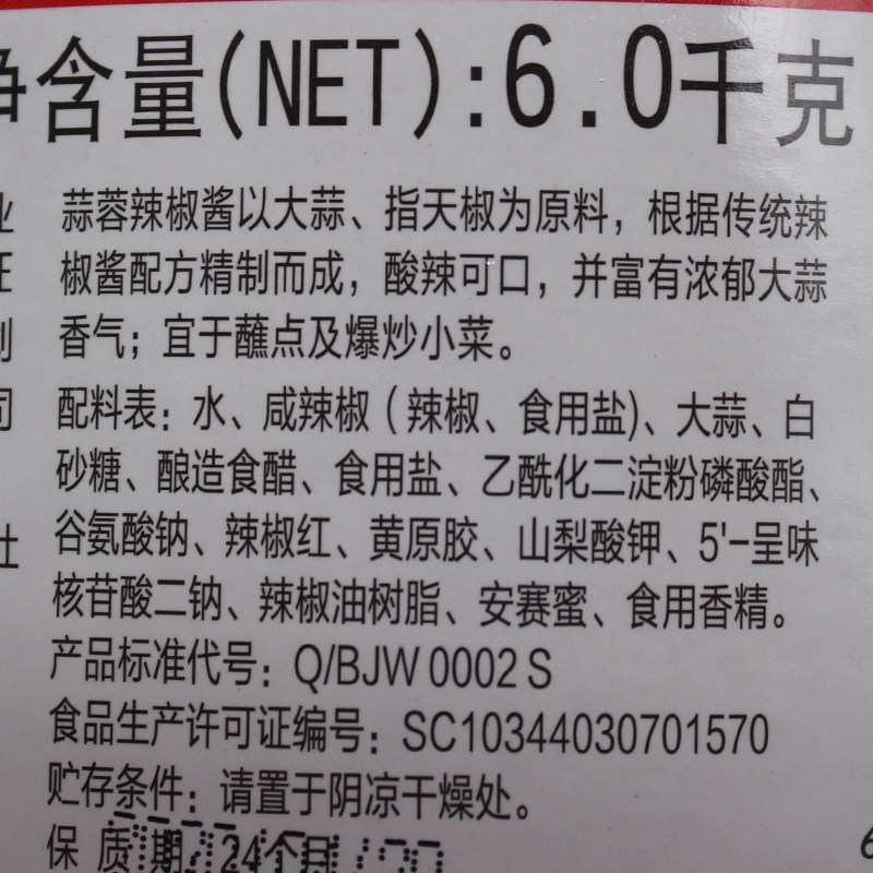 Hundreds of fresh garlic sauce chili sauce 6kg barrels Commercial large barrel Dining Sesame Hot hot pot Barbecue Mix Noodles
