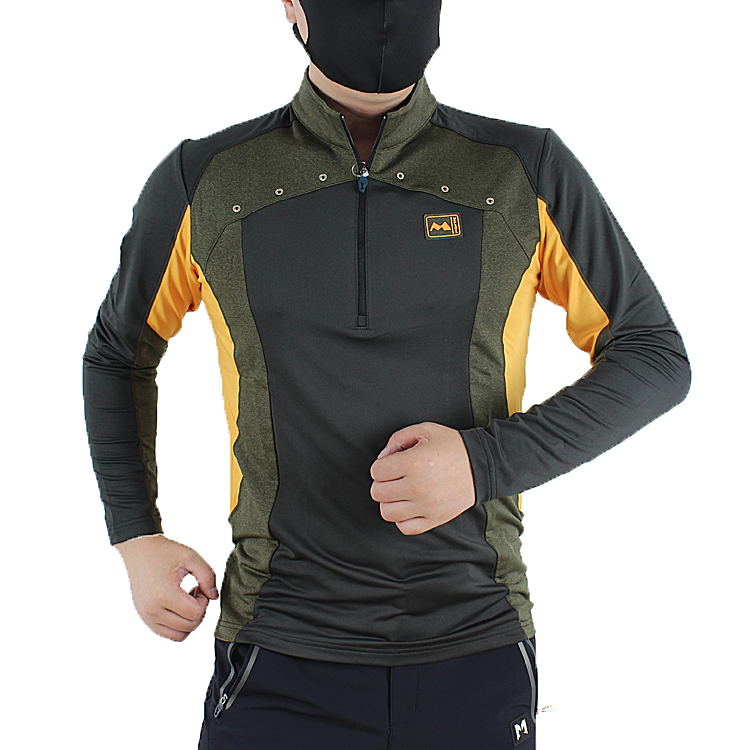 Spring and autumn season long sleeve speed dry T-shirt male body upright collar outdoor climbing beat bottom-shirt elastic breathable splicing quick drying clothes