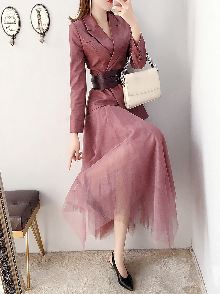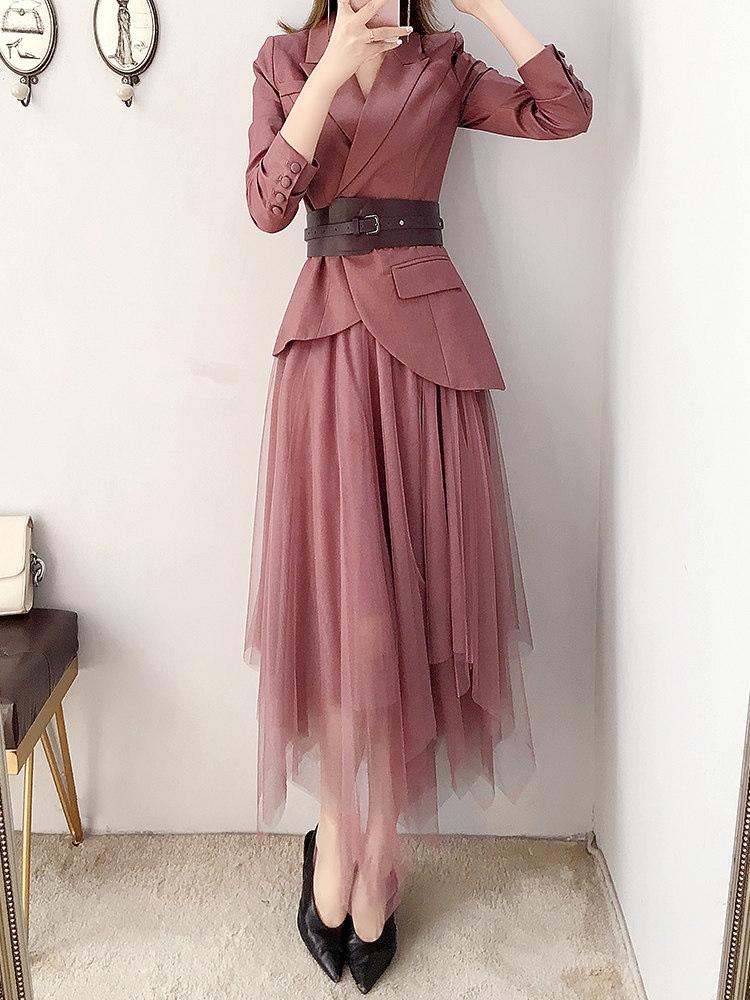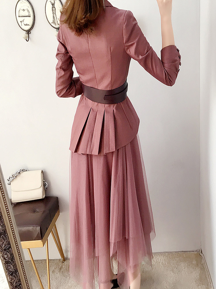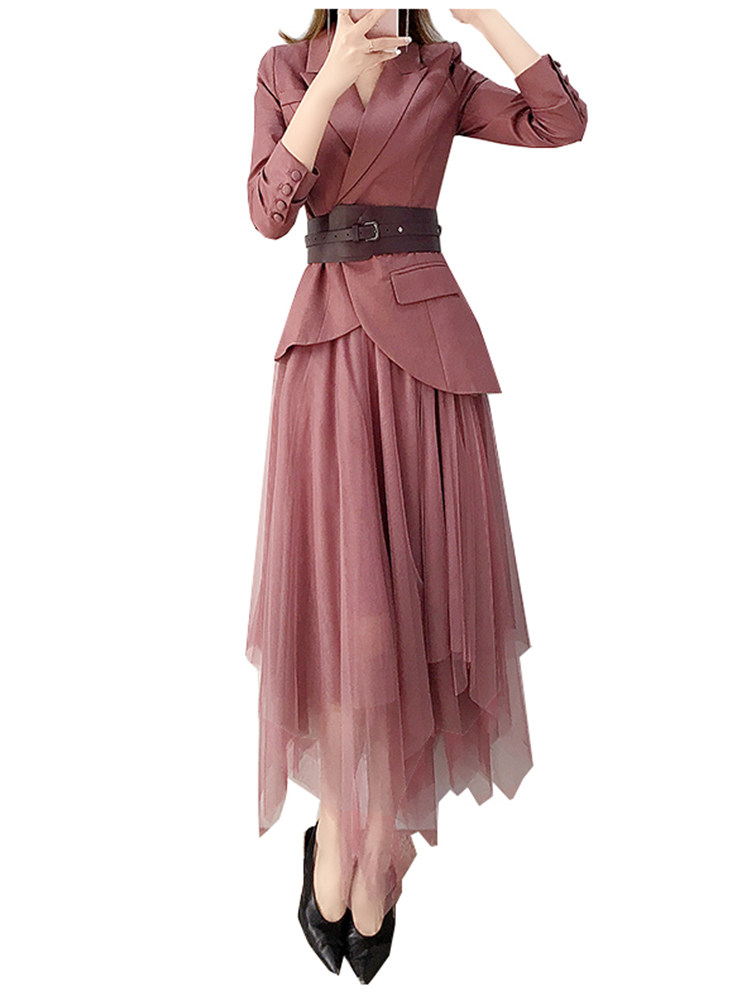 2022 Fall New Temperament Fashion Fashion Women's Dress Foreign Air Professional Suit Netting Dress Two Suits Women Autumn Winter