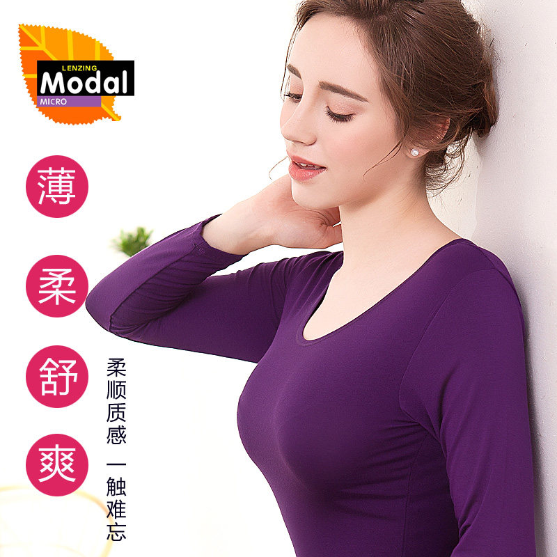 Modal bottoming shirt women's thin autumn and winter round neck heating clothes middle-aged and elderly autumn clothes slim fit inner top single piece - Taobao