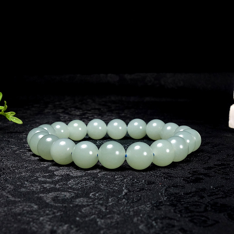 Chongyu produces Xinjiang Hetian jade seed material mountain material Hetian jade white jade jasper round bead bracelet bracelet