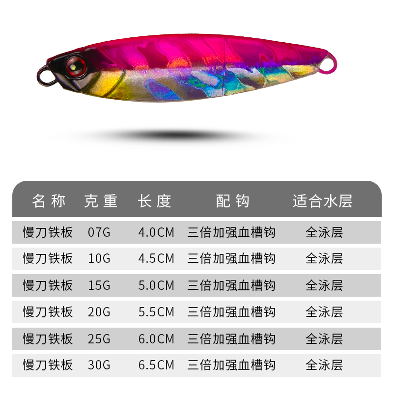 Japanese slow knife iron plate 10g single hook version 8-color set 8-piece Japanese slow knife iron plate 15g single hook version 8-color set 8-piece Japanese slow knife iron plate 20g single hook version 8-color set