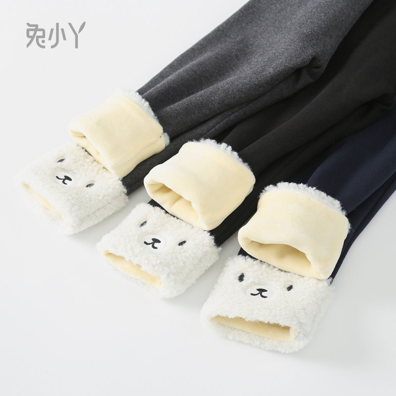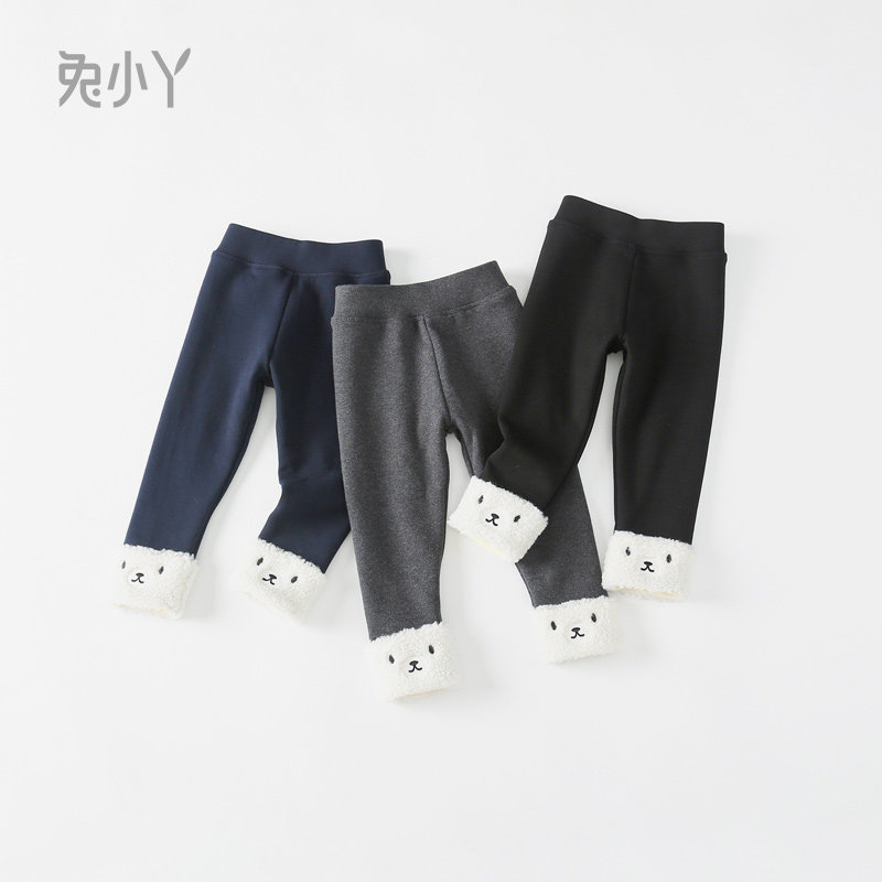 Female baby leggings with plush and thick winter outer wear female treasure foreign style children double warm long children pants