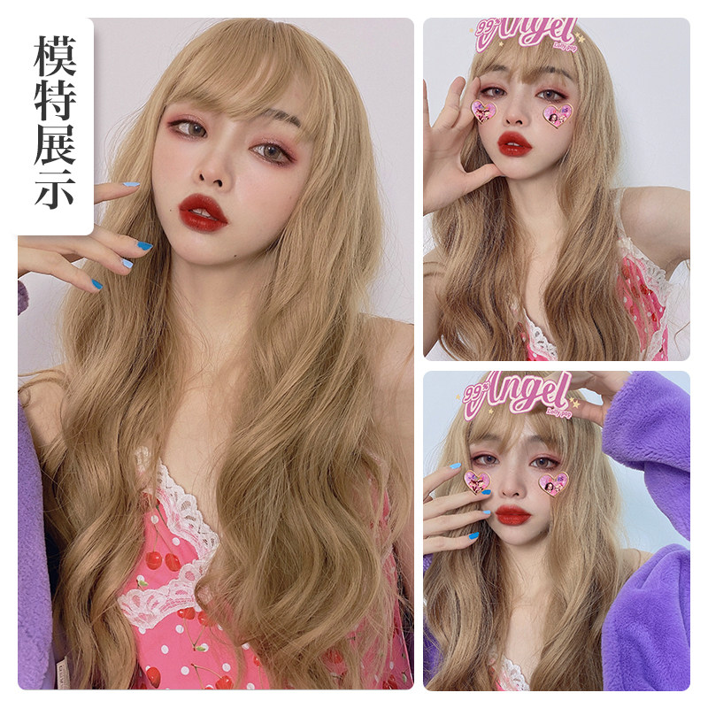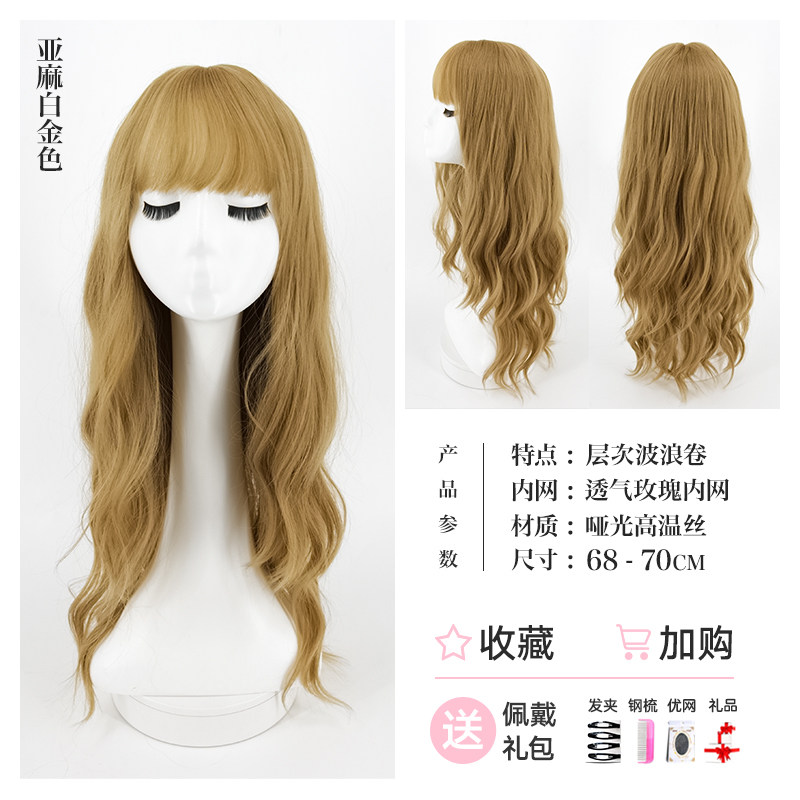 Wig female long hair long curly hair coas white gold cluster hair round face long page large wave full head set