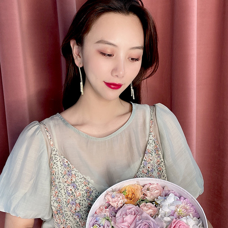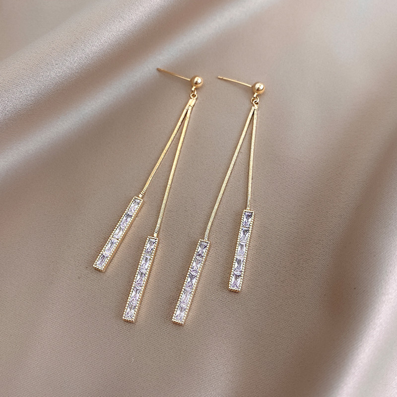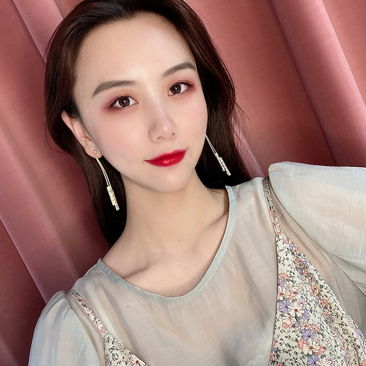 2022 new trendy earrings trendy fashion high-end round face long earrings female Korean temperament net red tassel ear acupuncture