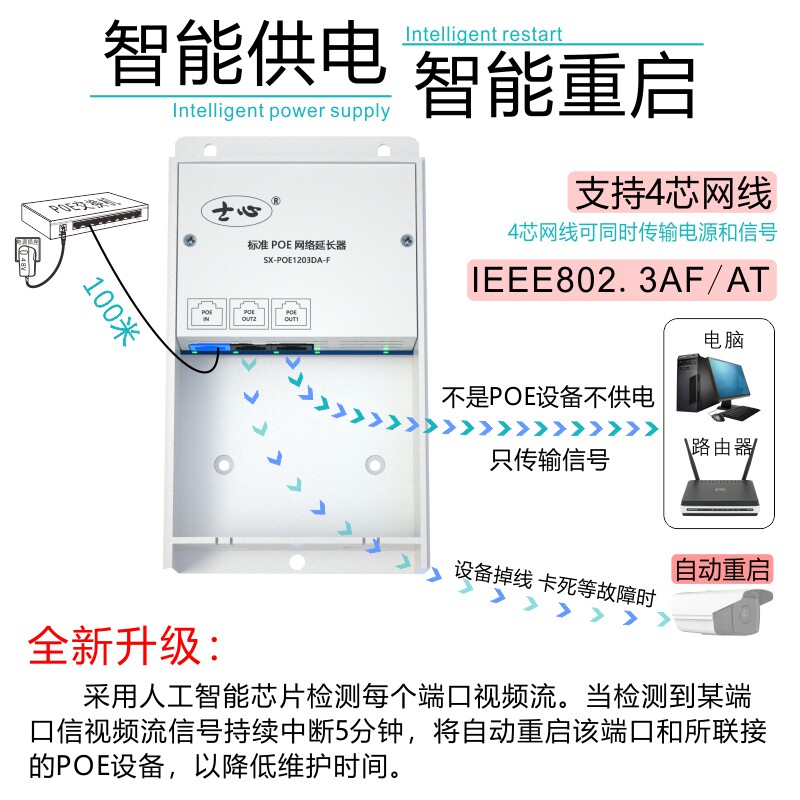 poe switch tandem standard POE Internet extender 1 minute 2POE relay long distance outdoor rain-proof 100 trillion