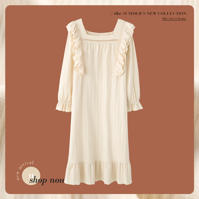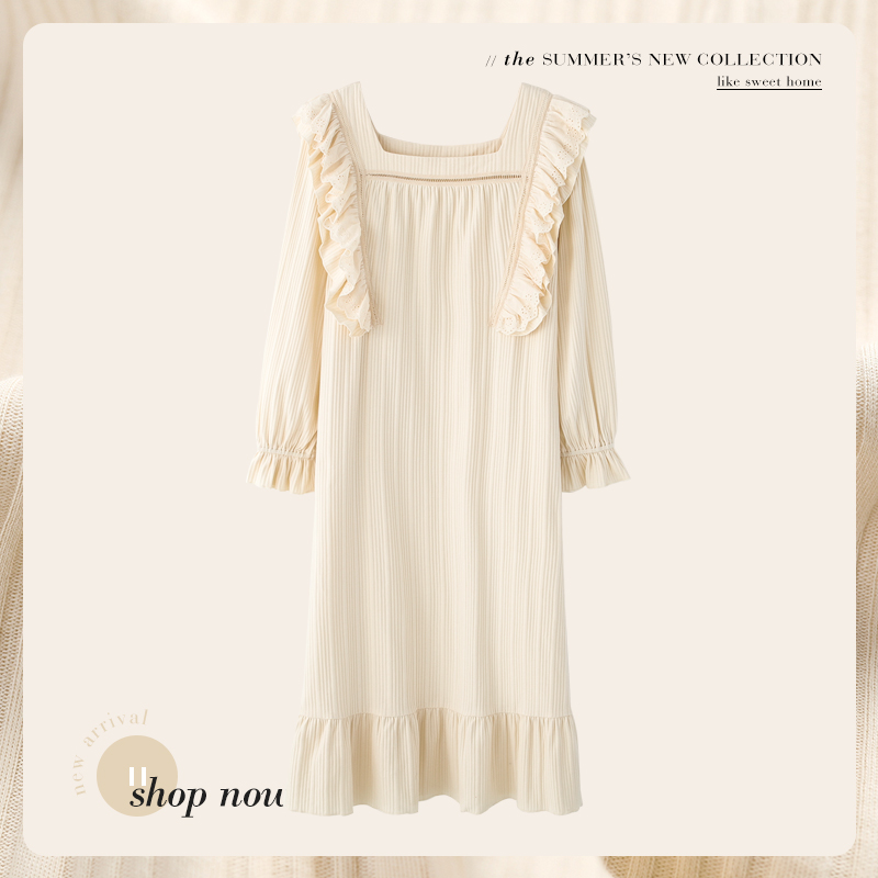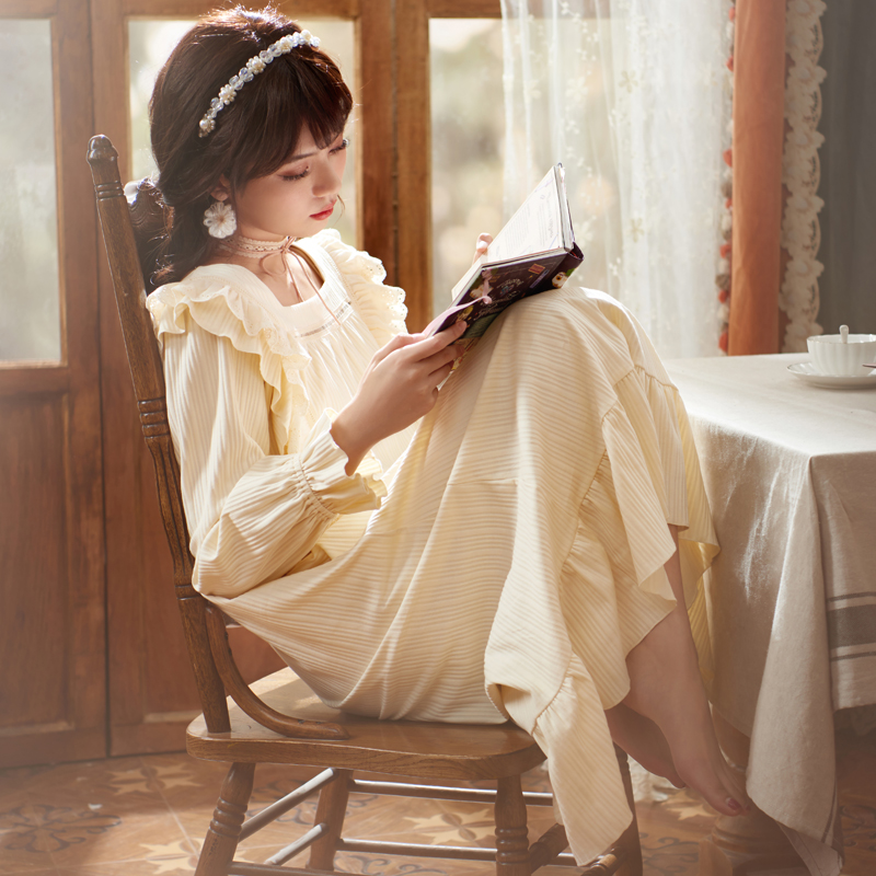 Mrs. Silie Sleeping Sleeping Dress Lady Spring Autumn Pure Cotton Long Sleeve 2022 New style pure desire princess Wind Long Edition Summer