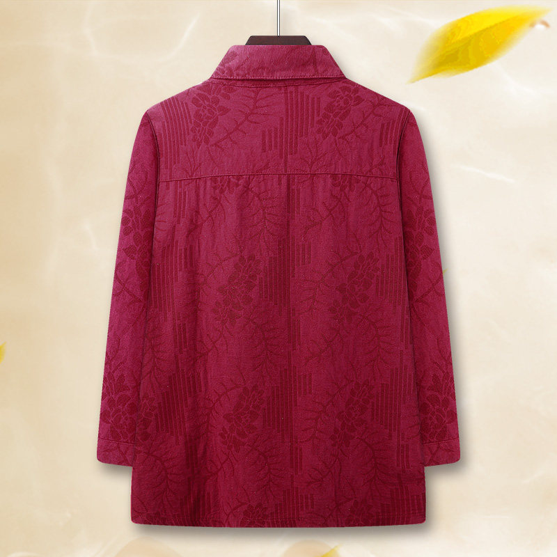 Elderly autumn tops long sleeves solid color loose 70 years old grandma autumn clothes thin cardigan with a cotton shirt