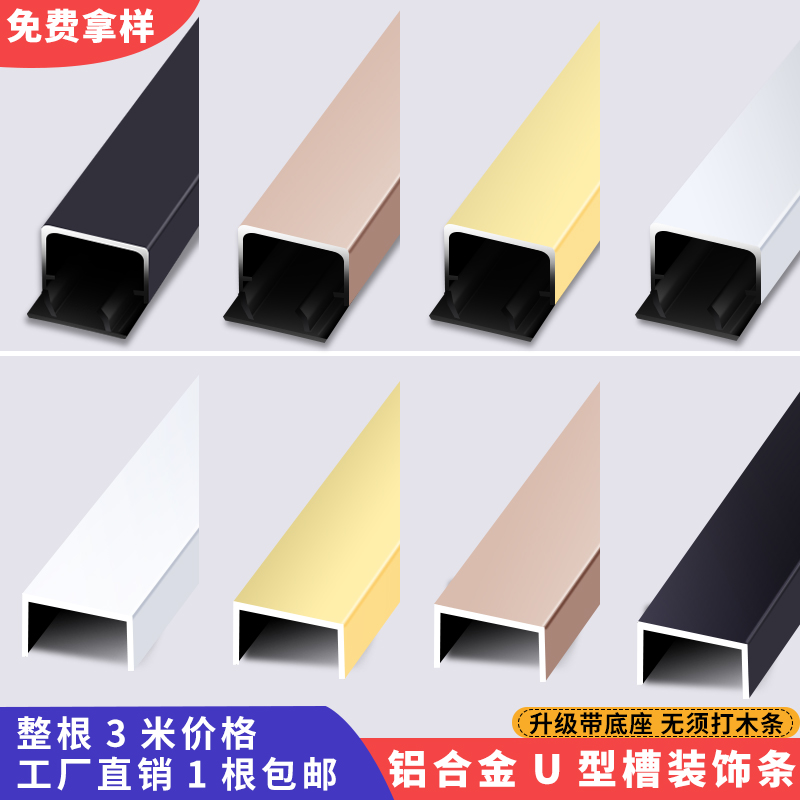 Aluminum alloy U groove strip wrapping strip hanging hanging type ceiling black titanium alloy stainless steel decorative strip free of notching metal strips background wall