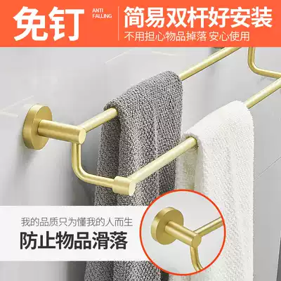 Towel rack non-perforated brass brushed double rod extended bathroom hanger hanging towel bar dressing room