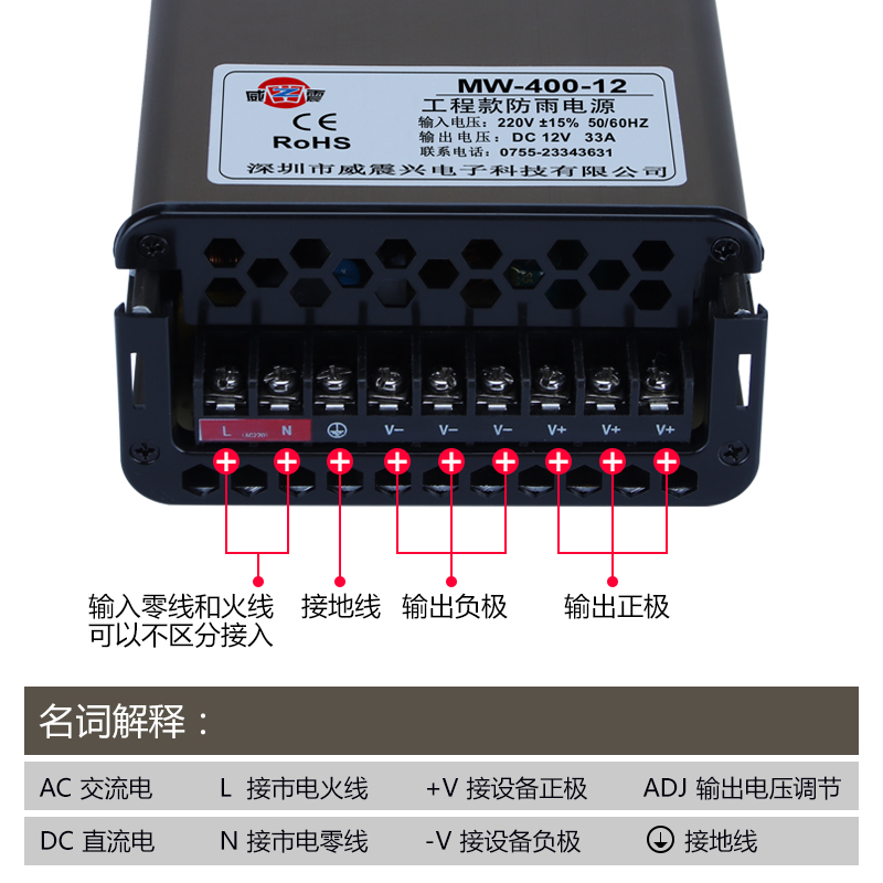 MW-400-12(12V33A)Engineering Rainproof MW-400-24 (24V17A)Engineering rainproof MW-350-12 (12V2