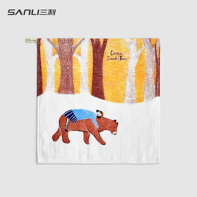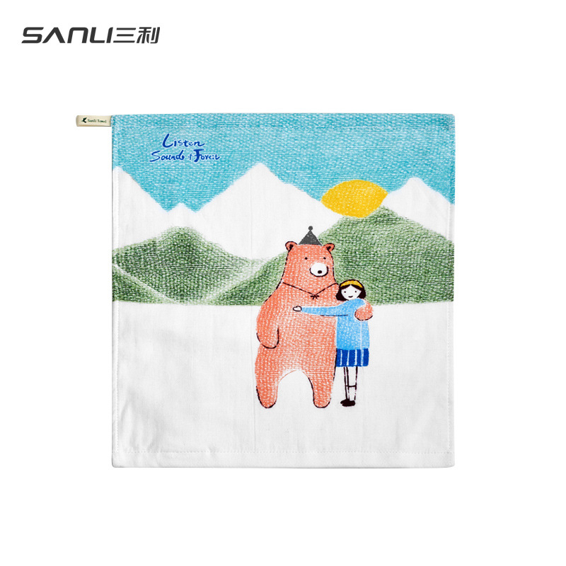 Sanli children towel wash face pure cotton soft gauze small square towel full cotton water suction Home Kindergarten cartoon face towels