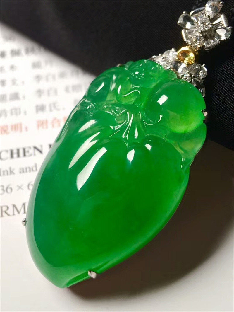 Natural A goods jade 18K inlaid ice species floating flower blessing melon pendant Myanmar Laokeng Yang green Guanyin female model certificate